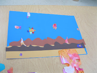 Students in third grade recently took an art "test" as I assessed their knowledge about warm and cool color palettes. As they rotated color diffusing paint that we applied onto specialty papers they were challenged to place the paint on the correct paper. These gorgeous creations will now lend themselves to the creation of Henri Matisse inspired collages. We chose an underwater theme based on his coral-like cut-outs that appear in his work. We also felt these bright pages would serve well as tropical fish. Ask your children how they are "drawing with scissors" in my class. This has also been a great unit to look at Eric Carle and how he accomplishes his uniquely collaged illustrations. Below are some of their starts.