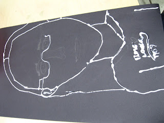 Here's the start of our chalk, cropped self portraits... more to follow.